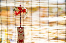 その起源は、古代中国の風の音で吉凶を占う道具「占風鐸(せんふうたく)」であるとされています。これが仏教と共に日本に伝わり、寺院の軒先に吊るされる風鐸となり魔よけの器具としても好まれたようです。その後に風鈴という呼び名が使われるようになったと。江戸時代にはガラス製のものが作られ、夏の風物詩として広まったと云われています。